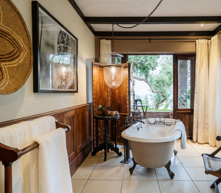 Unrivalled savannah views: Offering expansive en-suite bathrooms, dressing areas, fireplaces, living rooms and French doors opening onto welcoming verandas, the elegant cottages feature polished parquet floors, vintage collectables and comfortable furnishings – and provide guests with complete privacy, as well as unfiltered space and time to connect with the breathtaking surrounds.